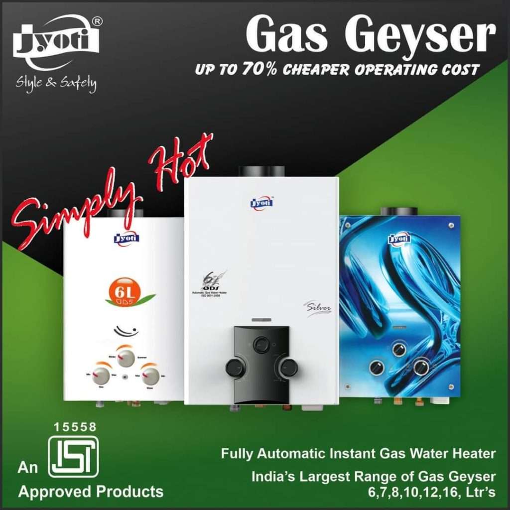Jyoti Deluxe LP Instant Gas Geyser | Fully Automatic Low Pressure Gas Water Heater | 6Ltr Capacity Copper Tank Gas | ISI Marked Heating Element