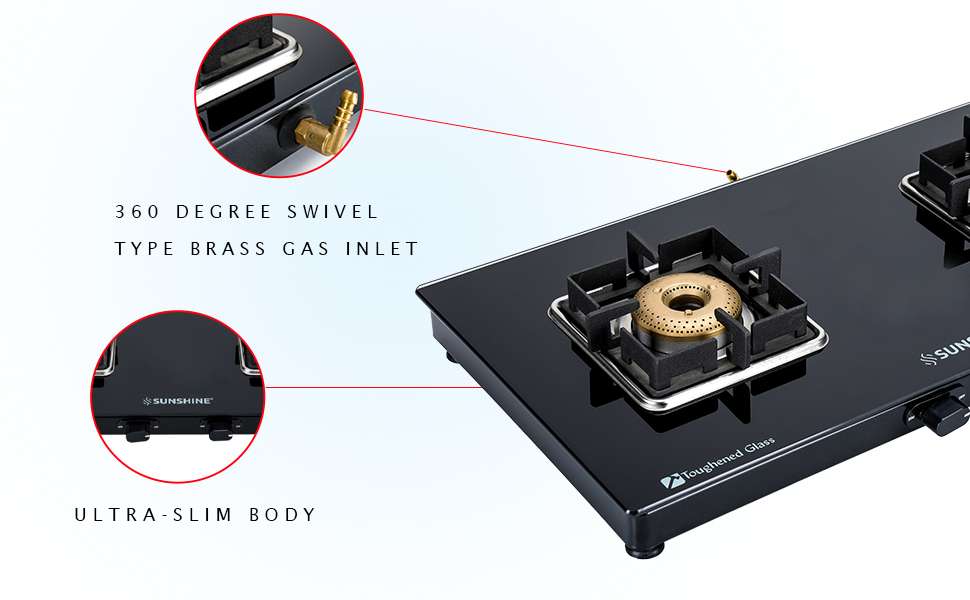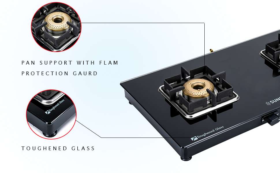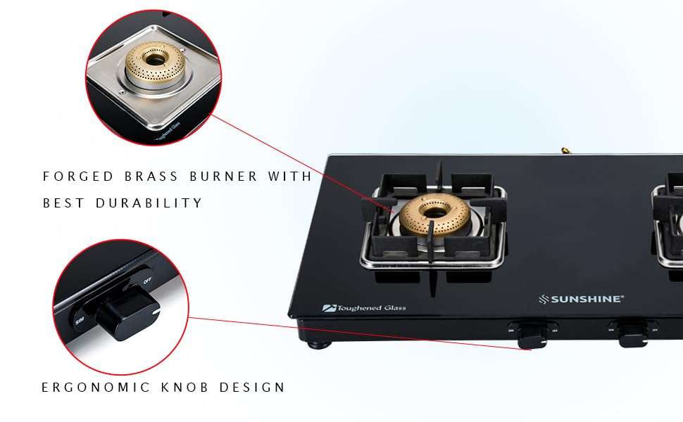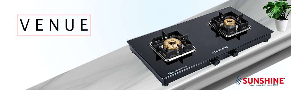 Sunshine Venue Toughened Glass Gas Stove gives your kitchen the modern look it requires. The sleek toughened glass top enhances the aesthetics of the stove while at the same time ensuring your safety. The cooktops ensure maximum fuel efficiency and each and every component is made with maximum precision.